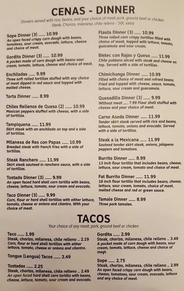 pieces. Corn, flour or hard shell tortillas with either lettuce, tomato, cheese or onions and cilantro. Served with your choice of meat.